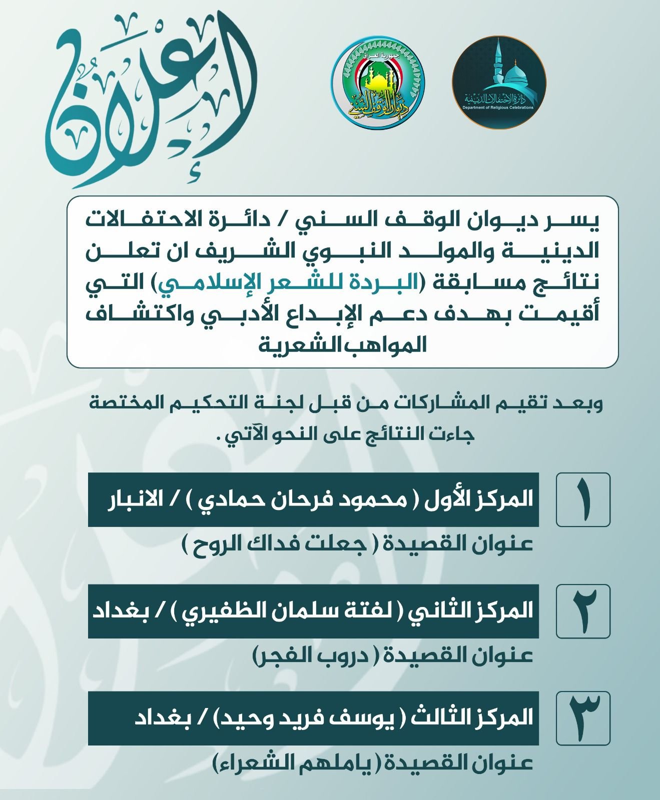 بإشراف السيد مدير عام دائرة الاحتفالات الدينية والمول